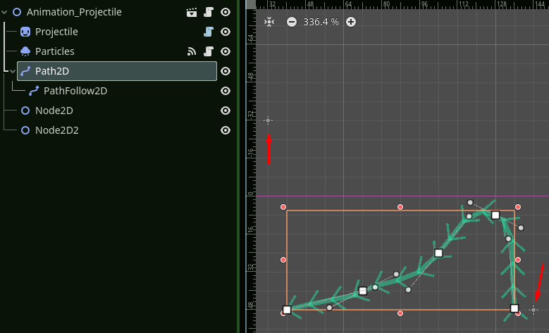 Je suis en train de test un peu la trajectoire des projectiles d'animation, avec le Path2D, comme je sais que t'as dût en faire Millefi je me suis dit que tu pouvais savoir comment résoudre ma problématique
