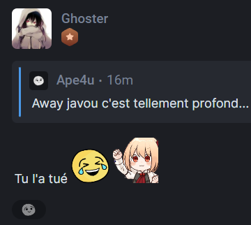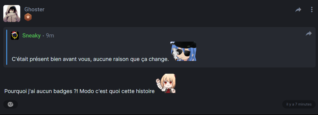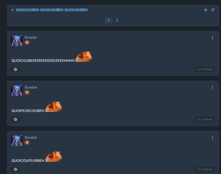 Les upvotes et emojis de mes couilles sous les topics, on dirait twitter et reddit