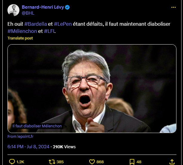Eh oui! #Bardella et #LePen étant défaits, il faut maintenant diaboliser #Mélenchon et #LFI.