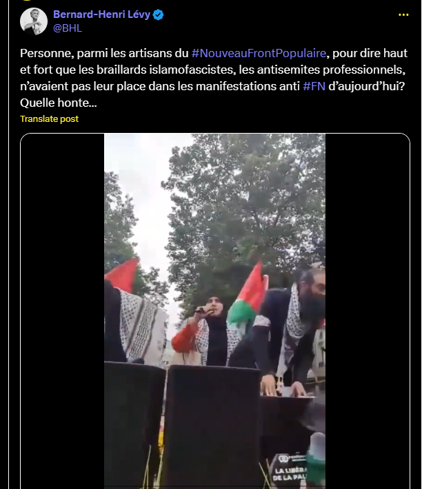 Personne, parmi les artisans du #NouveauFrontPopulaire, pour dire haut et fort que les braillards islamofascistes, les antisemites professionnels, n’avaient pas leur place dans les manifestations anti #FN d’aujourd’hui? Quelle honte…