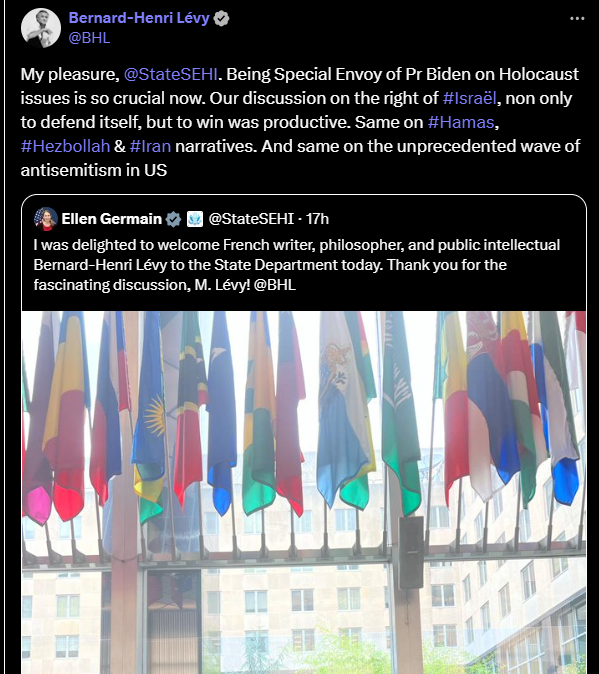 . Être l’envoyé spécial du Pr Biden sur les questions liées à l’Holocauste est désormais crucial. Notre discussion sur le droit d’#Israël, non seulement à se défendre, mais à gagner, a été productive. Idem pour les récits du #Hamas, du #Hezbollah et de l’#Iran. Et pareil pour la vague d’antisémitisme sans précédent aux États-Unis.