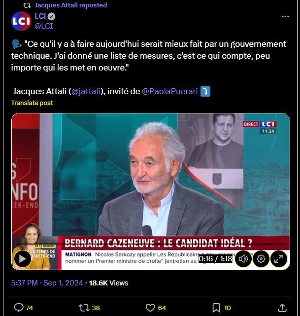 Gouvernement Barnier : la mise en garde de Jacques Attali #cdanslair l'invité 14.09.2024