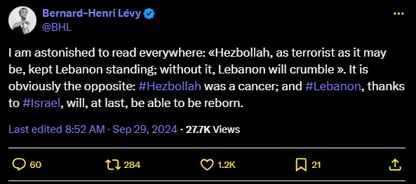 25 sept. 2024 #BHL #Israël #Liban
