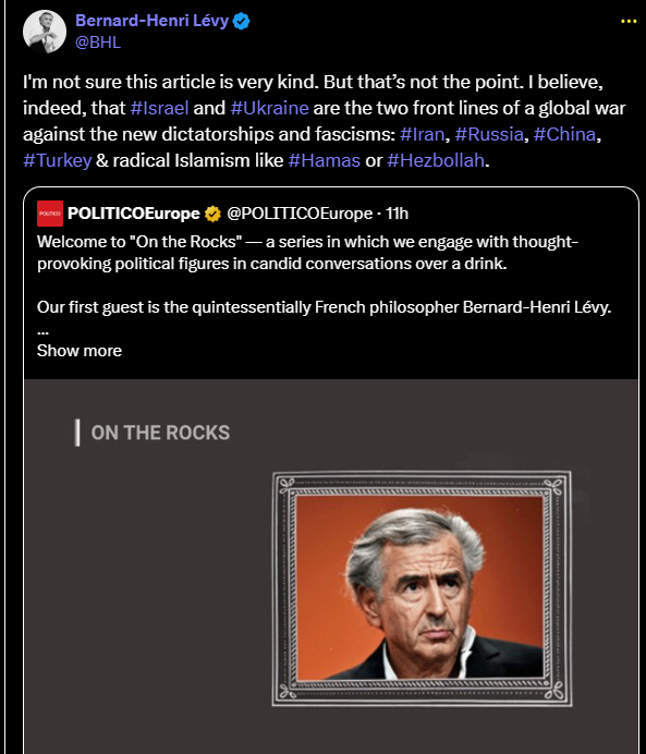 Je ne suis pas sûr que cet article soit très sympa. Mais ce n’est pas le sujet. Je crois en effet qu'#Israël et l'#Ukraine sont les deux lignes de front d'une guerre mondiale contre les nouvelles dictatures et les fascismes : l'#Iran, la #Russie, la #Chine, la #Turquie et l'islamisme radical comme le #Hamas ou le #Hezbollah.