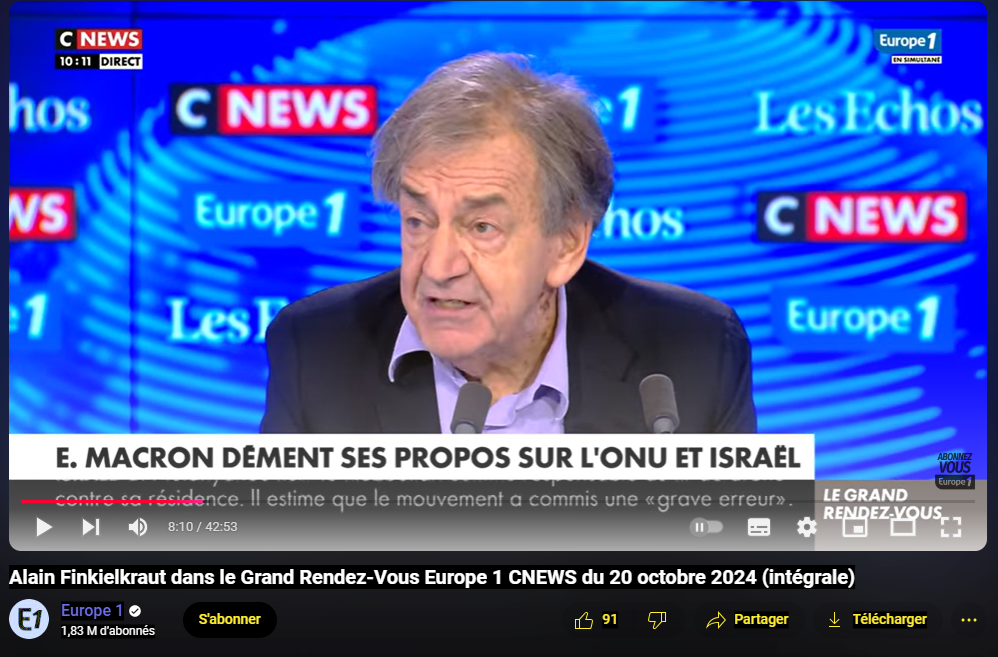 Alain Finkielkraut dans le Grand Rendez-Vous Europe 1 CNEWS du 20 octobre 2024 (intégrale)