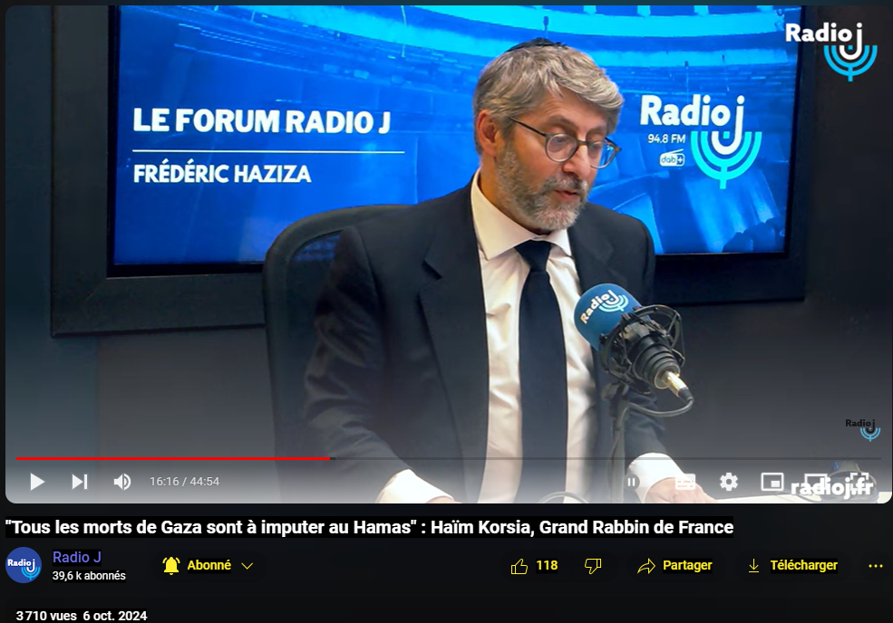 "Tous les morts de Gaza sont à imputer au Hamas" : Haïm Korsia, Grand Rabbin de France