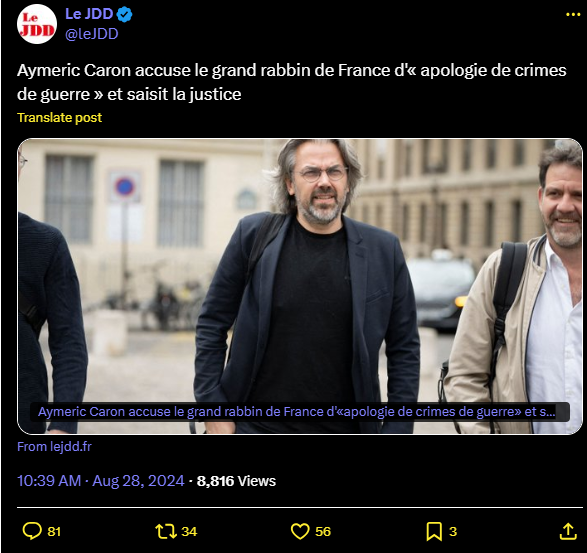 Aymeric Caron accuse le grand rabbin de France d'« apologie de crimes de guerre » et saisit la justice
