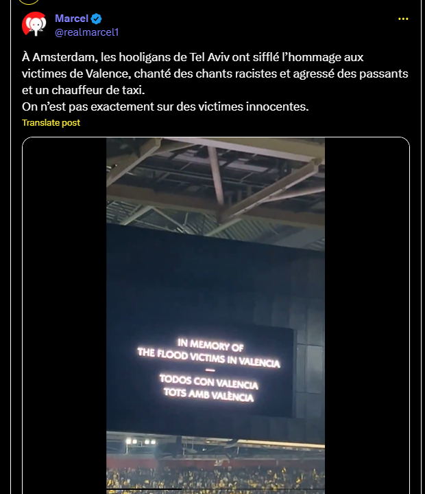 À Amsterdam, les hooligans de Tel Aviv ont sifflé l’hommage aux victimes de Valence, chanté des chants racistes et agressé des passants et un chauffeur de taxi.