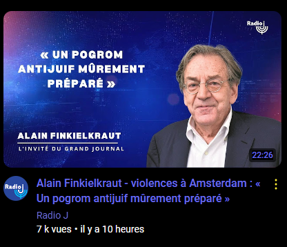 Alain Finkielkraut - violences à Amsterdam : « Un pogrom antijuif mûrement préparé »