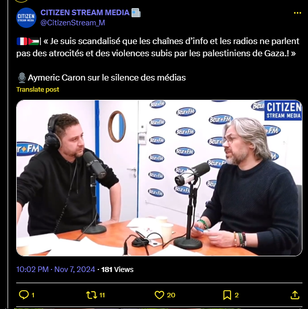 🇫🇷🇵🇸| « Je suis scandalisé que les chaînes d’info et les radios ne parlent pas des atrocités et des violences subis par les palestiniens de Gaza.! »