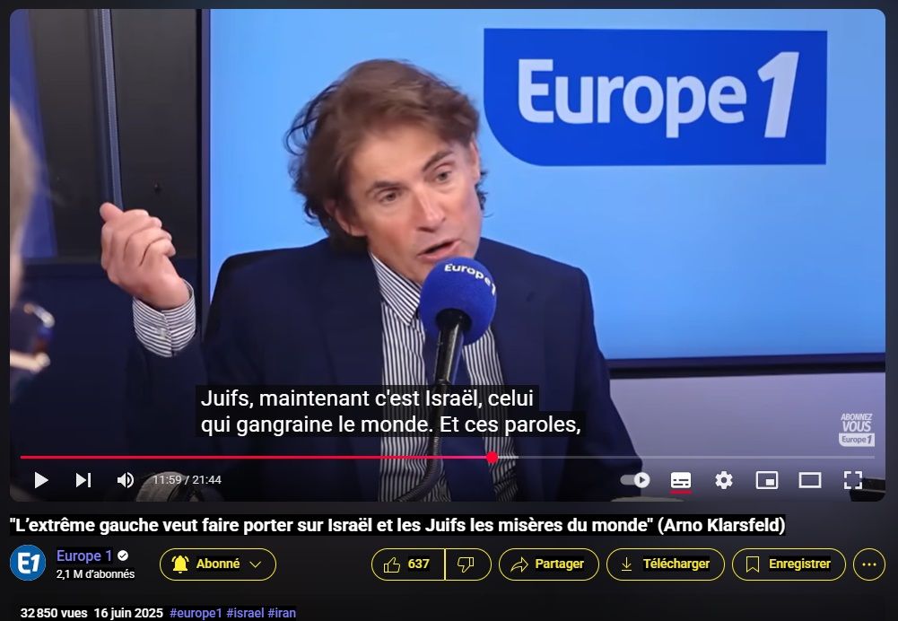 "L’extrême gauche veut faire porter sur Israël et les Juifs les misères du monde" (Arno Klarsfeld)