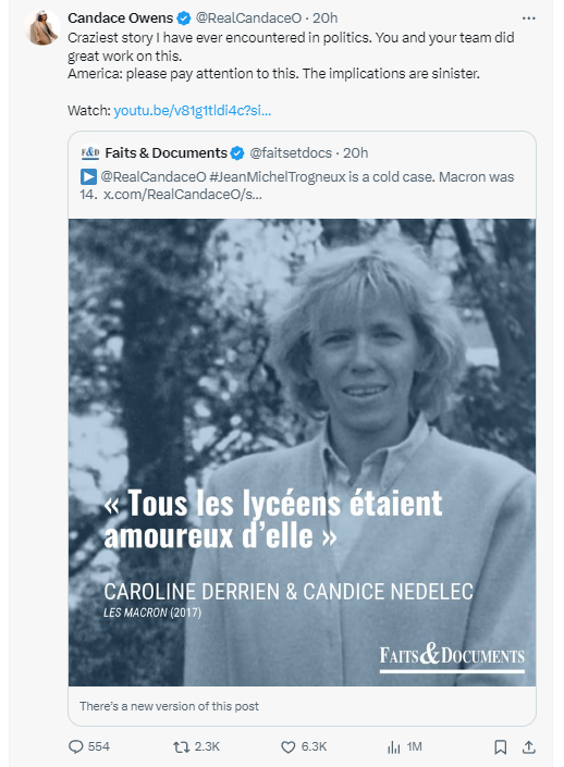 Ce que j'ADORE avec la vidéo de cette Américaine, c'est que tous les Américains vont savoir ce qui est vrai là-dedans, qu'elle explique au début de sa vidéo : le début de la relation entre Brigitte et Emmanuel Macron, son âge à l'époque, leur grande différence d'âge...