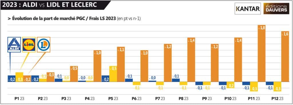 Et dans les chiffres, le calcul est vite fait : on constate sur l'évolution de PDM entre les hard discounters allemands et nos magasins Leclerc que les français ont clairement choisi de bien s'alimenter parmi un choix large, varié, dans des magasins spacieux, où l'employé est respecté pour sa plus noble fonction, et non comme ces allemands qui ont tout misé sur le rendement de leur casier flexisclave.