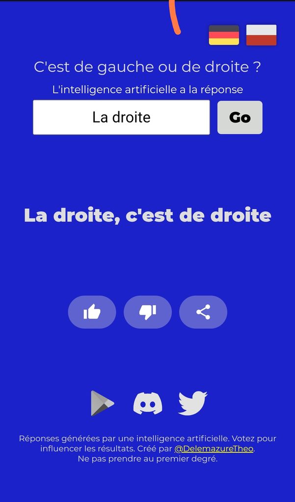 Grace a cette IA ont lui demande par un mot ou une phrase ce qui est de droite ou de gauche et vous screener ce que vous aviez répondu.....