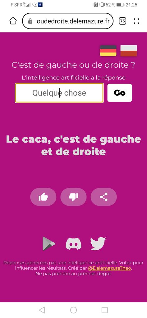 Grace a cette IA ont lui demande par un mot ou une phrase ce qui est de droite ou de gauche et vous screener ce que vous aviez répondu.....