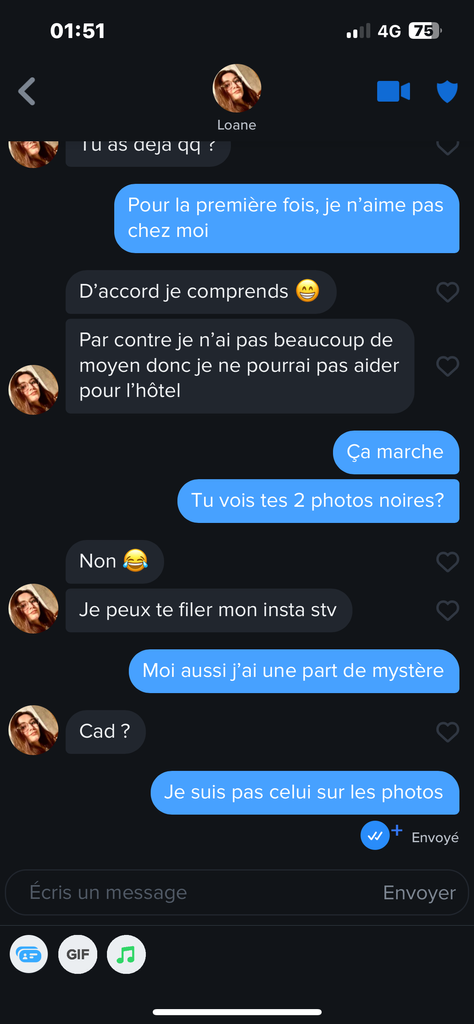 Et si je lui avoue qu’elle parle à un fake et lui demande si elle est ok pour se voir réellement ?