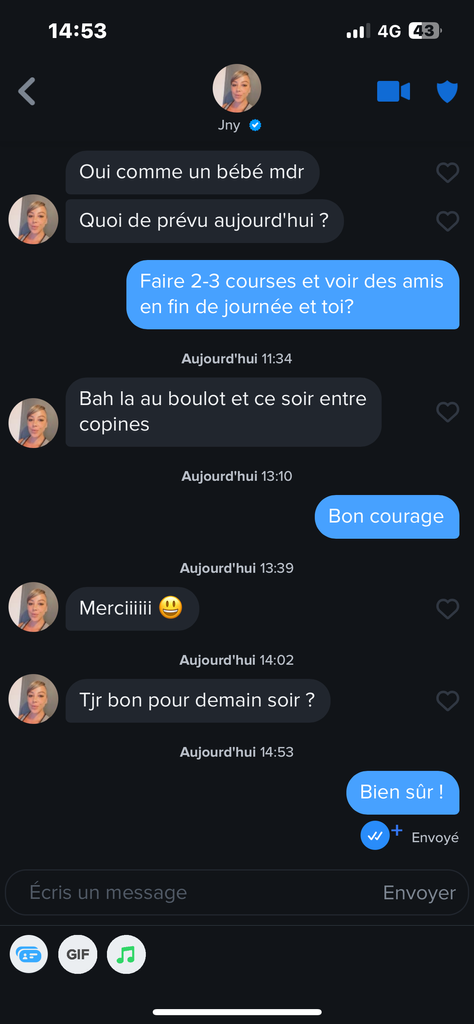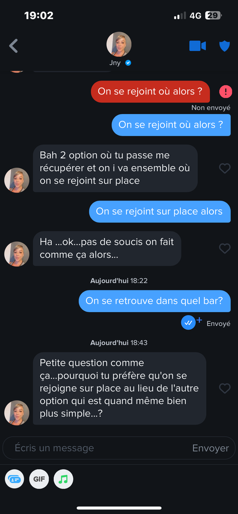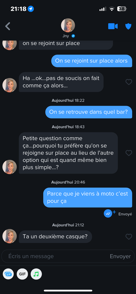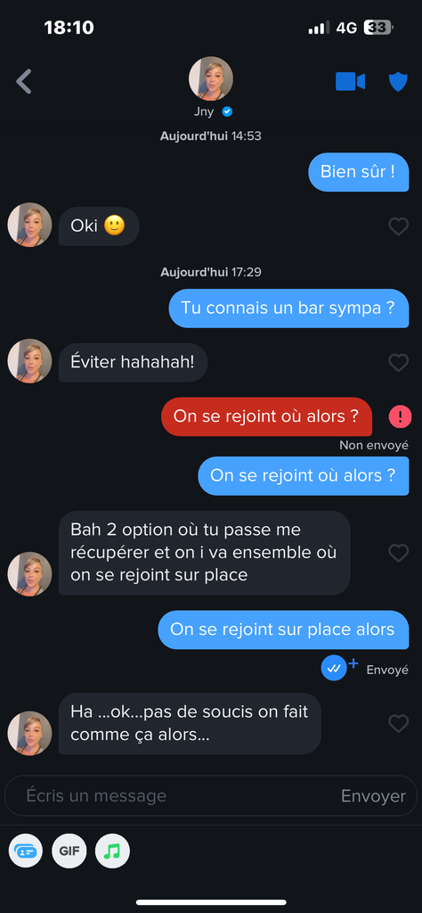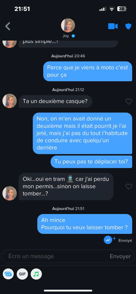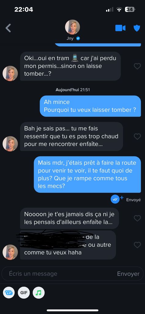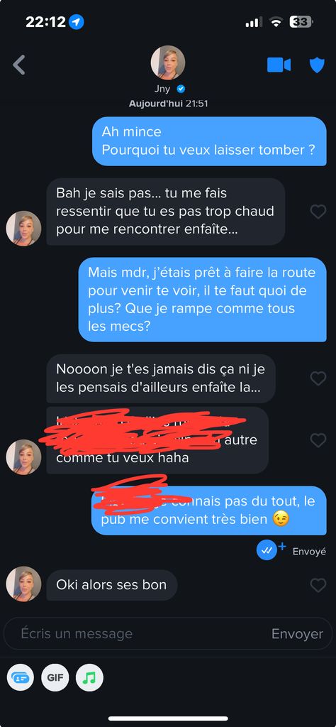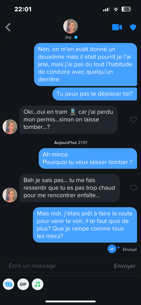 J’aurais dit la même avec mon vrai compte elle m’aurait soit rembarré soit unmatch