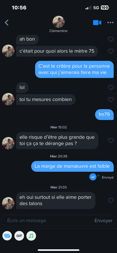 Et les filles que tu matches et à qui tu proposes des dates, ce sont des combien/10 en moyenne ?