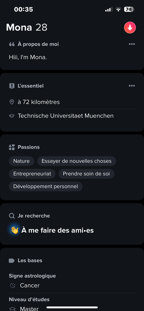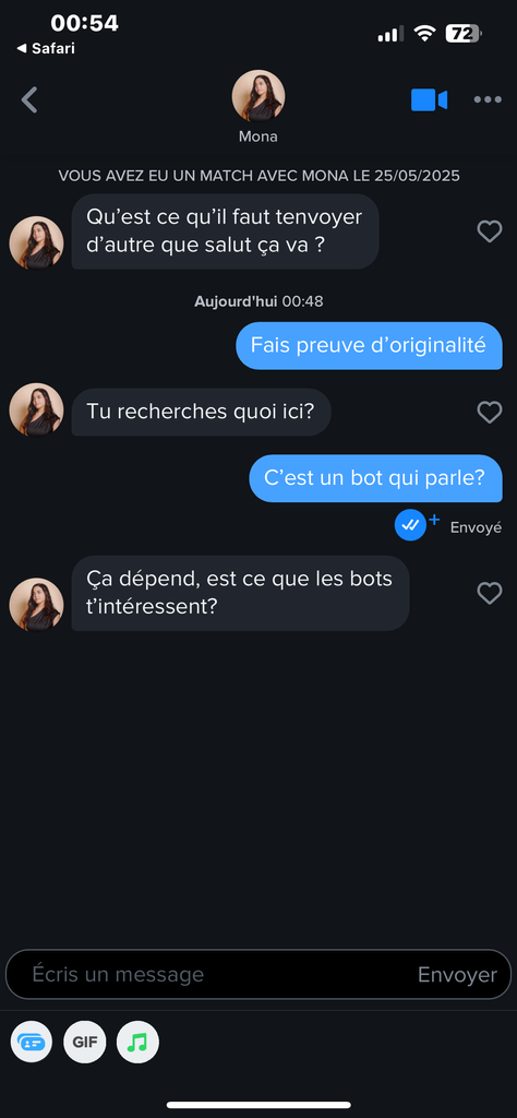 Si vous voulez m’aider pour lancer des discussions avec mon fake alors oui, car je n’ai pas d’idée et brisé depuis 1 an depuis ma rupture