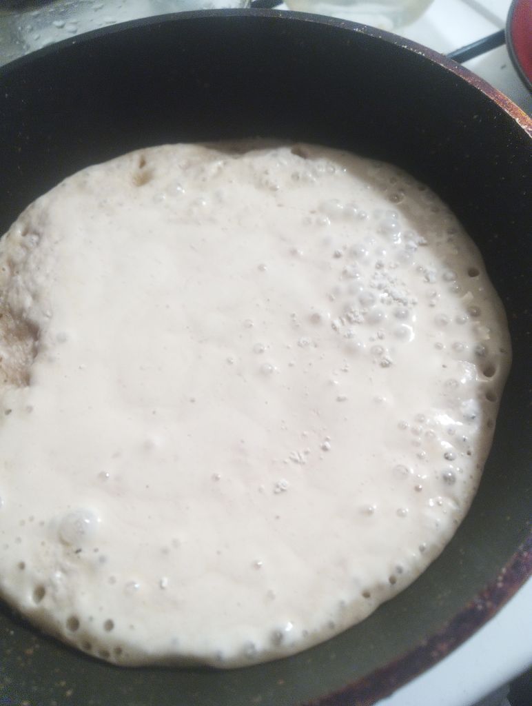 Quand tu rafraîchis ton levain, au lieu de jeter l'excédent rafraîchi, tu le fais cuire dans une poêle huilée