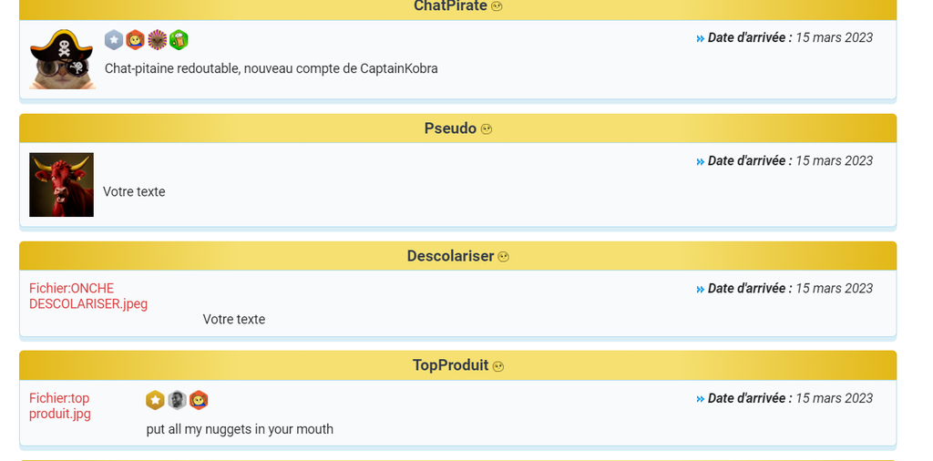 @ChocoRat bon, j'ai tenté le truc, pas sûr que ça soit concluant, c'est où qu'on précise qu'on a uploadé notre avatar ?