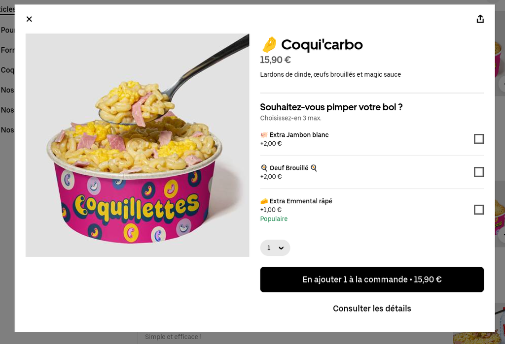 on ajoute le petit toppers Extra emmental râpé pour avoir comme sur la photo et le petit toppers Extra jambon blanc pour faire le plein de protéines et on est déjà à 13e90 puis en ajoutant les frais de services et les frais de livraison on arrive facilement à 20euros :lebossgraisse2Velorev: