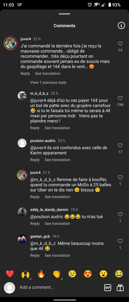 AYA PUTAIN "gneugneu quand tu commandes 25€ a Mcdo on te dit rien alors laisse moi bouffer mes pates a 16€"