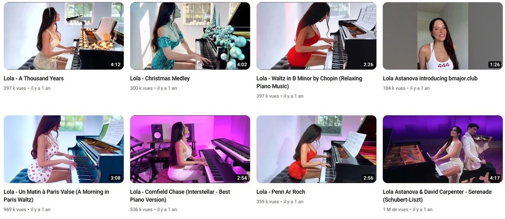 Cette femme sur Youtube qui fait du piano. 3.56M d'abonnés.