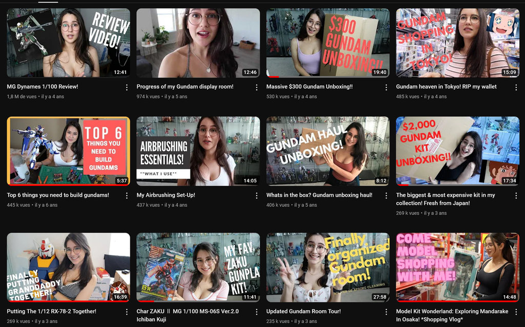 Cette femme sur youtube qui monte des gunpla. 215k abonnés.