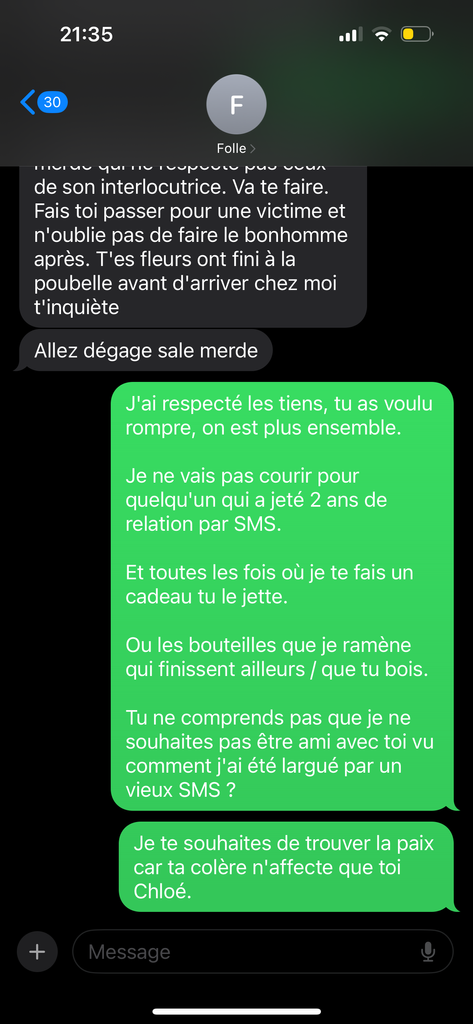 Mais maintenant je te traite de con pour lui envoyer des pavés pareil alors qu'elle t'a largué par SMS
