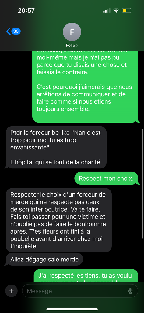 Et elle continue de me parler de sa journée etc donc je lui ai envoyé le gros pavé et elle s’énerve toute seule ?