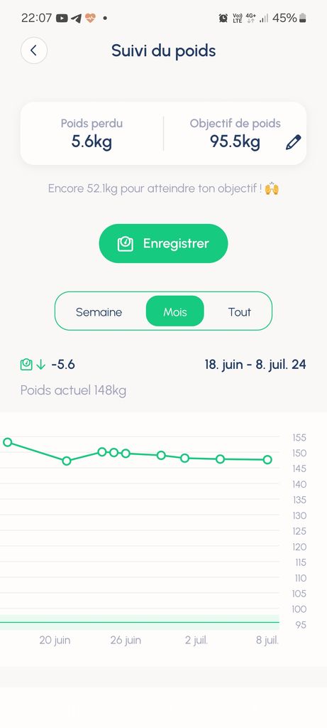 Aujourd'hui 149.9 - tout le monde s'en bat la race, mais je publierai à chaque fois que je me pèserai !