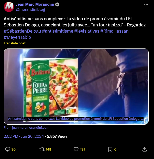 Antisémitisme sans complexe : La video de promo à vomir du LFI Sébastien Delogu, associant les juifs avec... "un four à pizza" - Regardez #SébastienDelogu #antisémitisme #législatives #RimaHassan #MeyerHabib