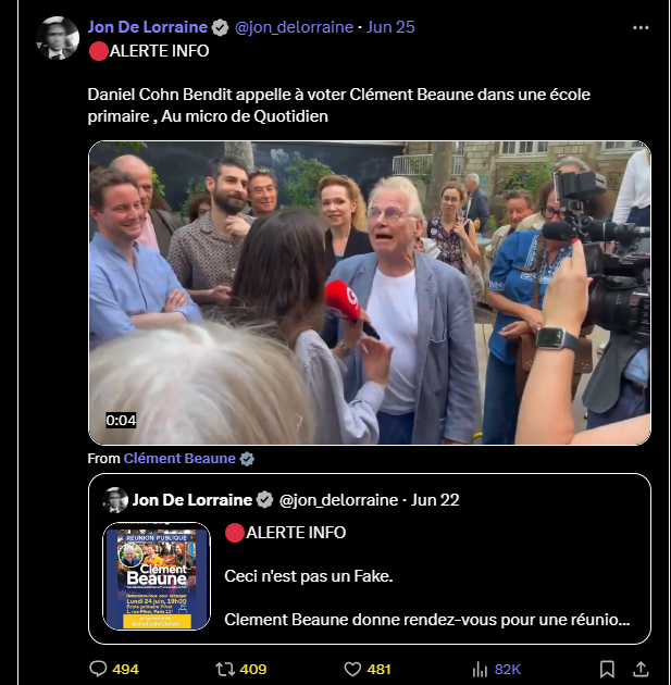 Daniel Cohn Bendit appelle à voter Clément Beaune dans une école primaire , Au micro de Quotidien
