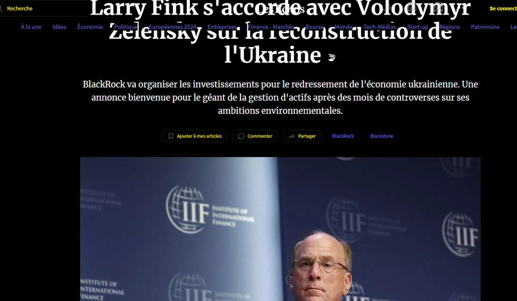 Larry Fink s'accorde avec Volodymyr Zelensky sur la reconstruction de l'Ukraine