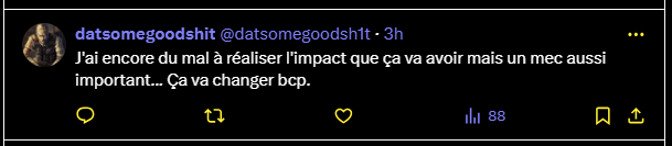 J'ai encore du mal à réaliser l'impact que ça va avoir mais un mec aussi important... Ça va changer bcp.