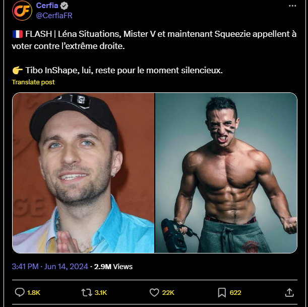 🇫🇷 FLASH | Léna Situations, Mister V et maintenant Squeezie appellent à voter contre l’extrême droite.
