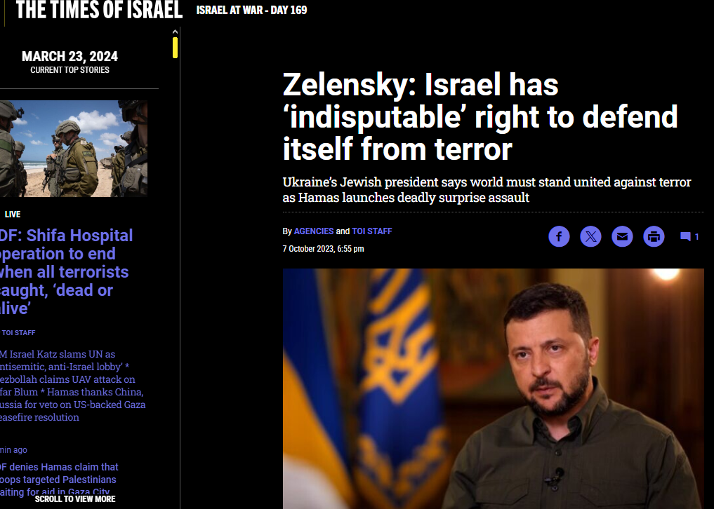 Zelensky : Israël a le droit « incontestable » de se défendre contre le terrorisme