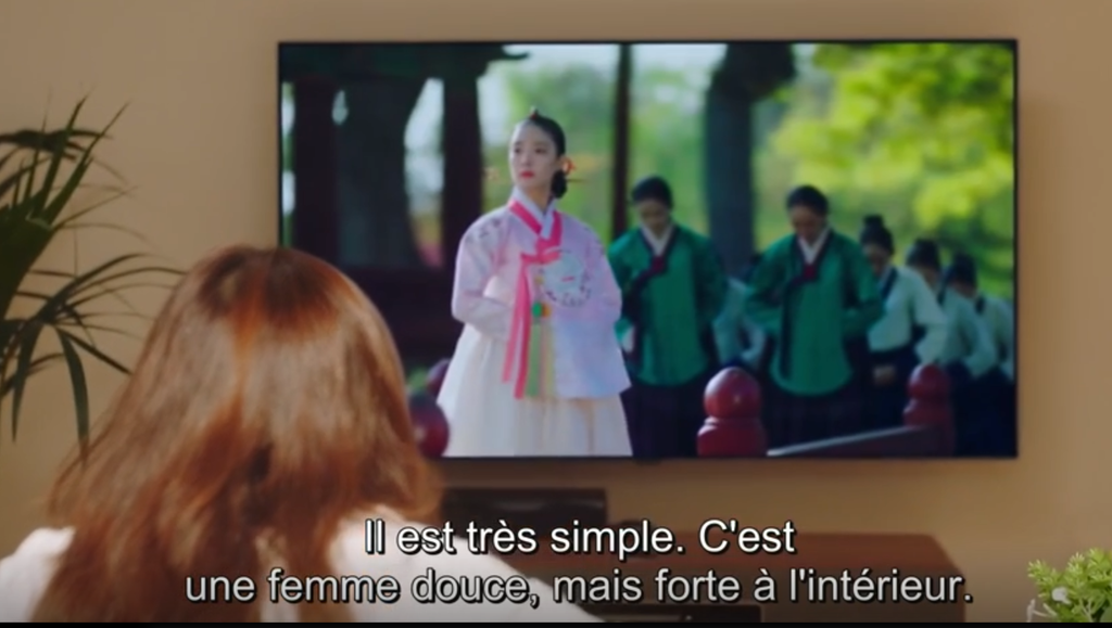 Dans une romance secondaire avec des personnages secondaires, une CDP (l'amie de Shin Min Ah) interroge un QLC policier sur son type de femme. Contrairement à un beauf français, le QLC explique que son style de femme est une femme "douce" et "forte à l'intérieur". Je n'ai pas mis dans l'image, mais il dit également qu'il aime les femmes au style féerique qui portent le hanbok, et qu'il adore les dramas historiques (d'où l'image avec le drama dans le drama là), en gros, pas une grosse pute de française ahient