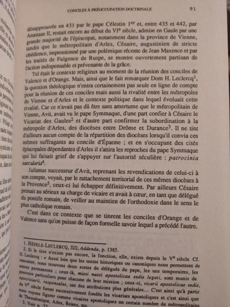 Première incursion romaine en Gaulle... Concile de Valence et d'Orange (529). Qui s'oppose aux saints de l'école provençale et aux évêques du nord et du centre de la Gaule. Avec en prime une altération du centre historique de l'église française.