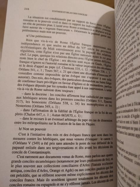 5eme concile d'Orléans en 549. Condamnation par les évêques français du pape Vigile, ils demandent au roi d'intervenir. Le roi a donc remplacé en France l'empereur dans la symphonie des pouvoirs.