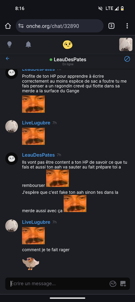 Alors que soit disant tu étais bilingue, tu veux que je sorte les mp Avortin ? T'es un mytho pathologique, et les golem qui croient a ton histoire d'hp ayaaa ils me fument