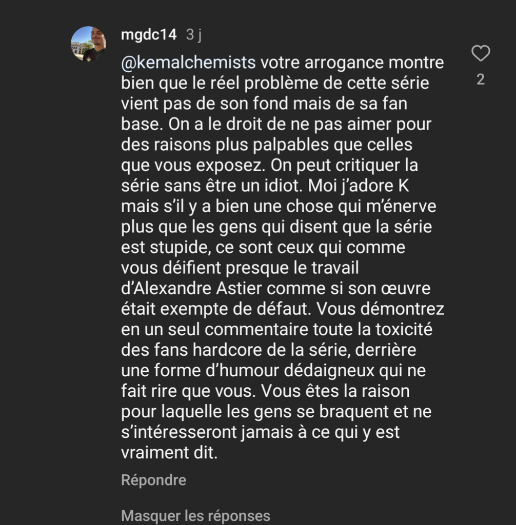 Par contre irl j'ai déjà un collègien qui m'avait expliqué très sérieusement a quel point Rick et morty c'est profond