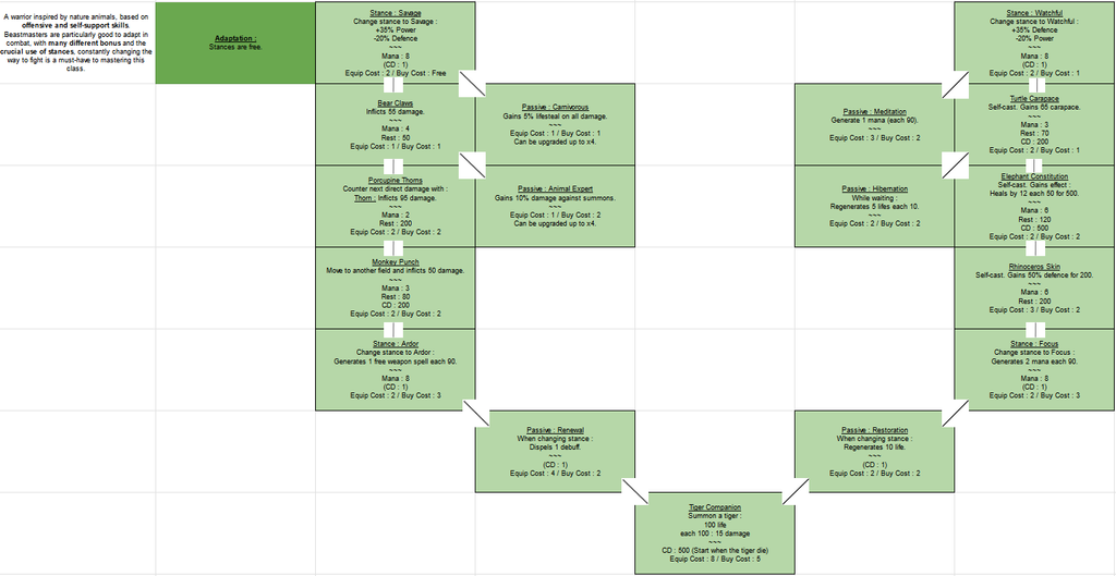 Pour commencer, j'ai théorisé en détail les arbres de talent des 8 classes présentes + 2