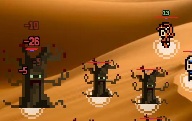 Sinon pour tout ce qui est visibilité et visuels, je peux conseiller de miser sur les contrastes afin de faire bien ressortir les éléments importants du jeu. Ton texte de dégâts a besoin de contours blancs ou noirs (voire les deux si tu veux insister).