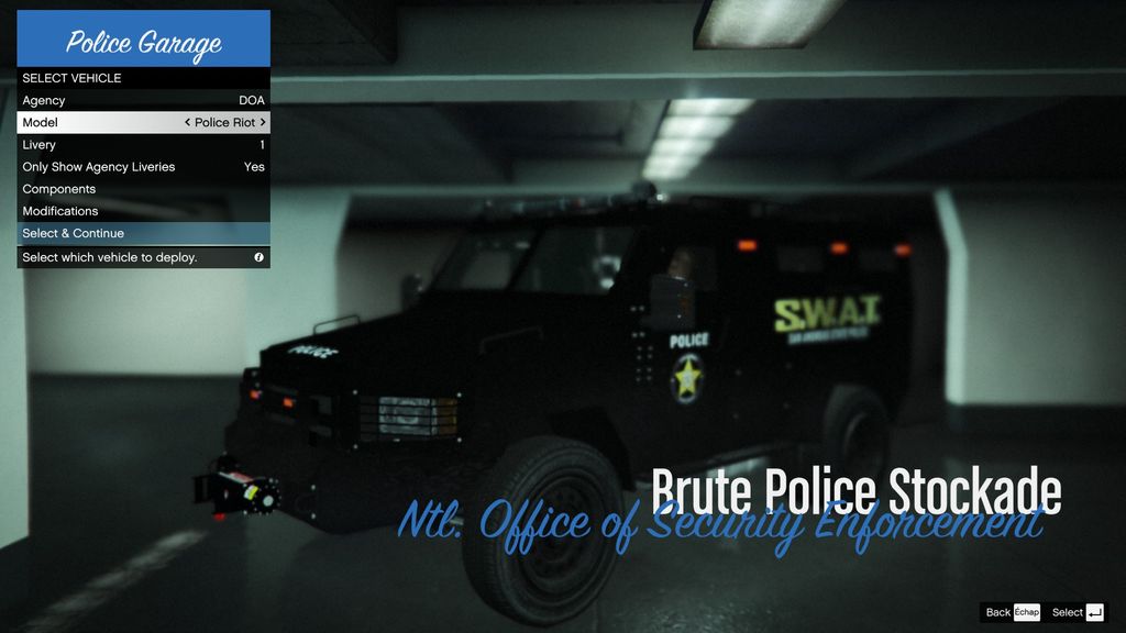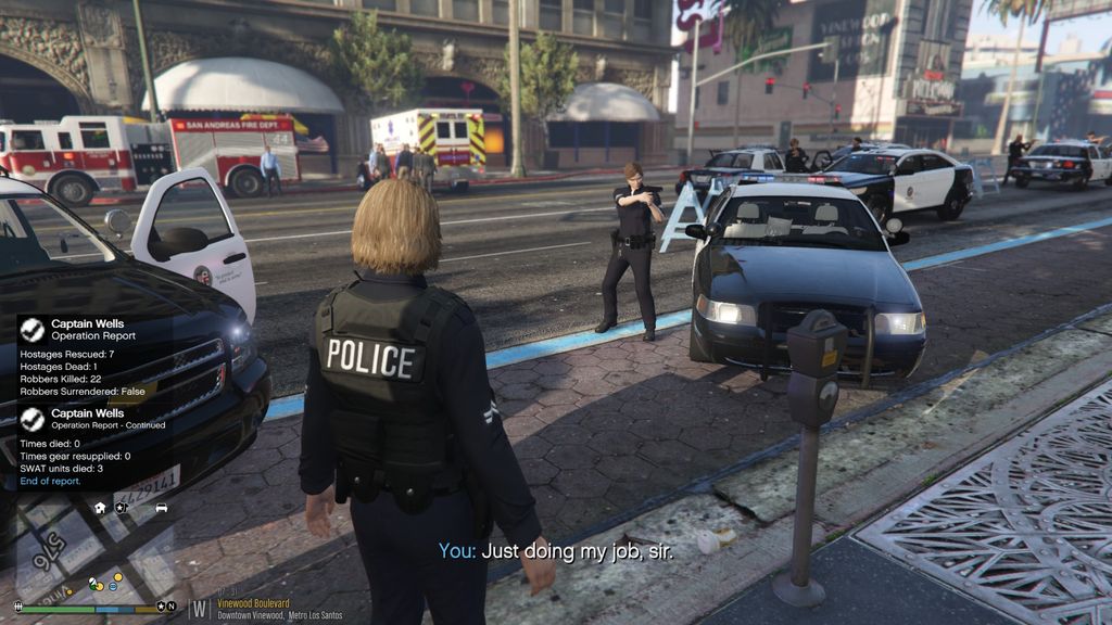 Police de LS, police de la route, police locale et shériff, SWAT (et N.O.O.S.E), IAA, FIB, etc.,...