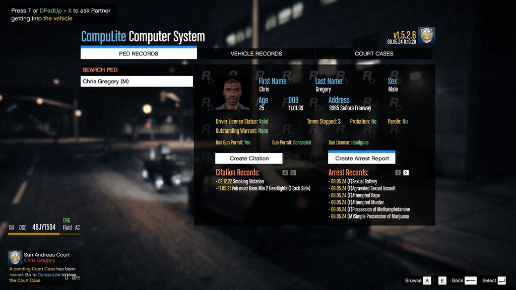 le mod "compulite" qui permet de faire des rapports d'arrestations et des contraventions