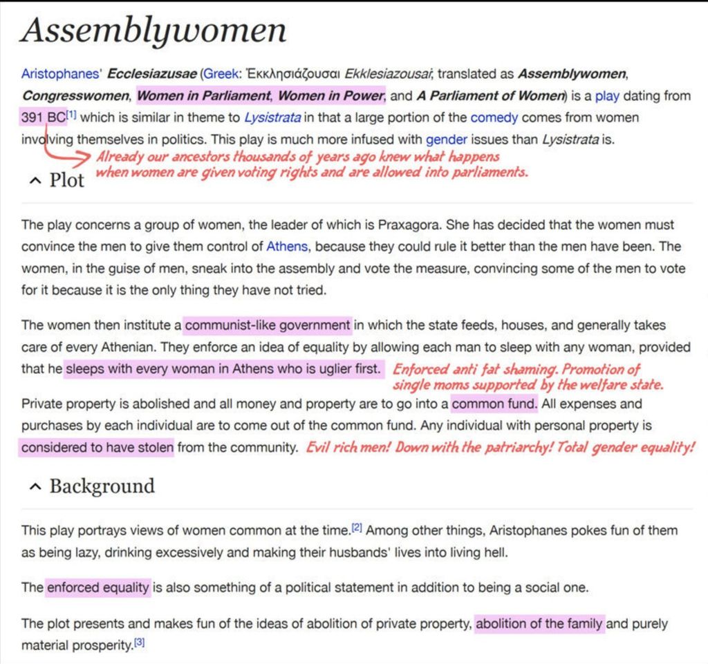 Les Grecques avaient déjà compris en -391 av JC ce qui se passait quand on donnait le droit de vote aux femmes et qu'on les laissaient s'impliquer dans la vie politique.