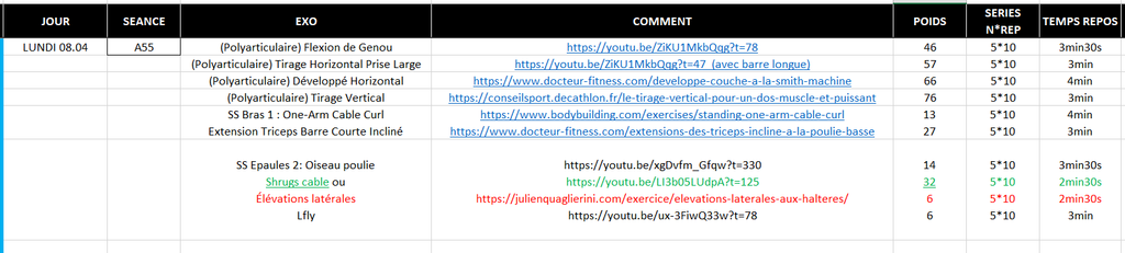 Pour être honnête ça me prend même parfois 4h30-5h, mon corps tiens le coup pour l’instant, maintenant je ne prétend pas être spécialiste à aucun moment ça fait 8 mois, mes poids sont pas encore super lourd, c'est un full body trouvé sur JVC,