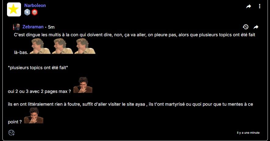 Souvent mes posts font couler les topics actifs. https://onche.org/topic/1[...]it-robert-du-quoicoubeh/1